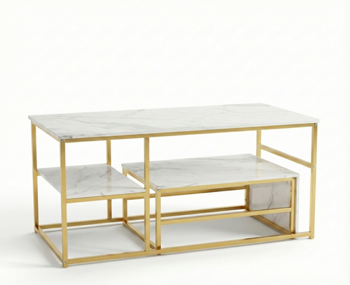 Table Basse Design Rectangulaire à Niveaux – Finition Effet Marbre ou Bois